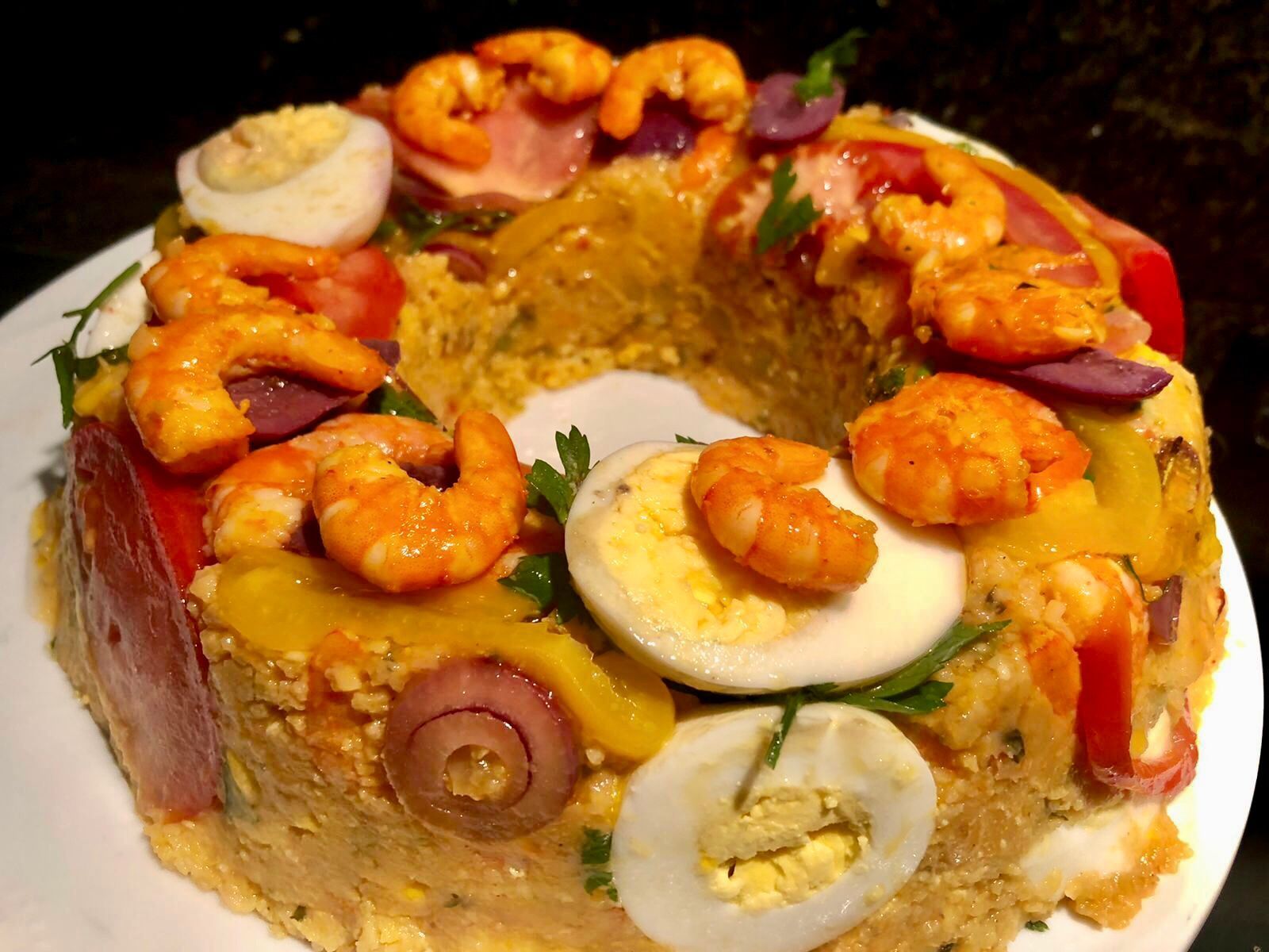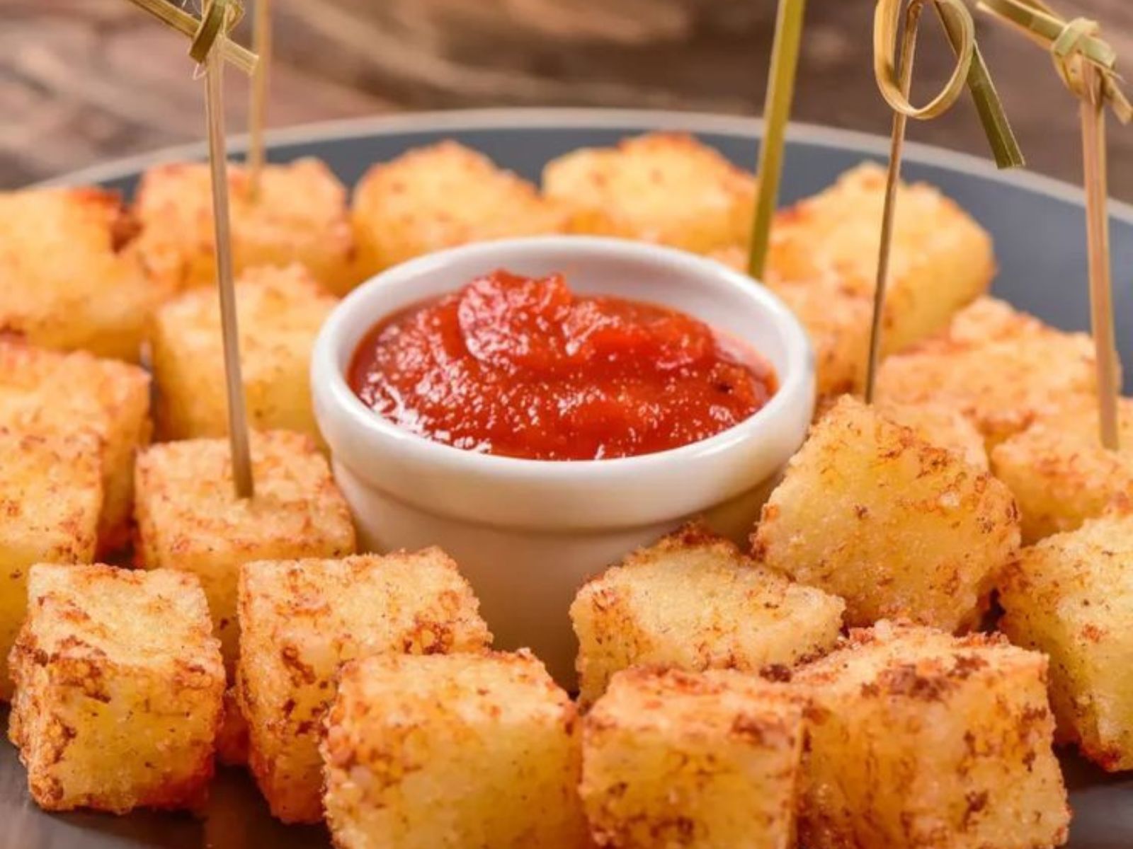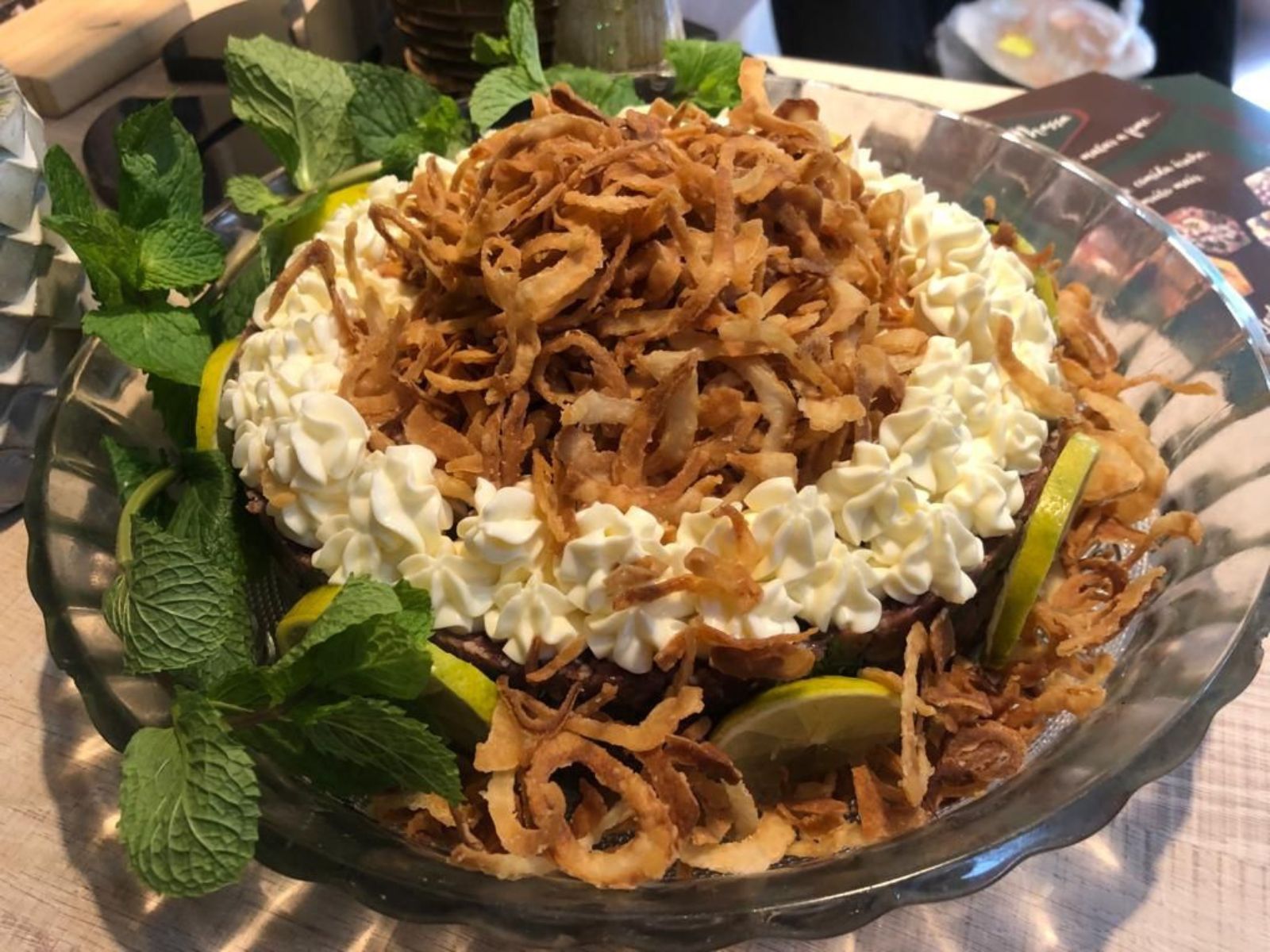 Nhoque gratinado de mandioquinha com fonduta de gorgonzola e farofinha de ervas