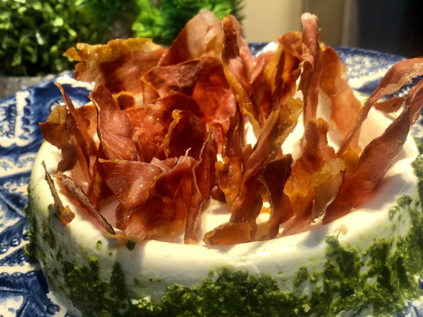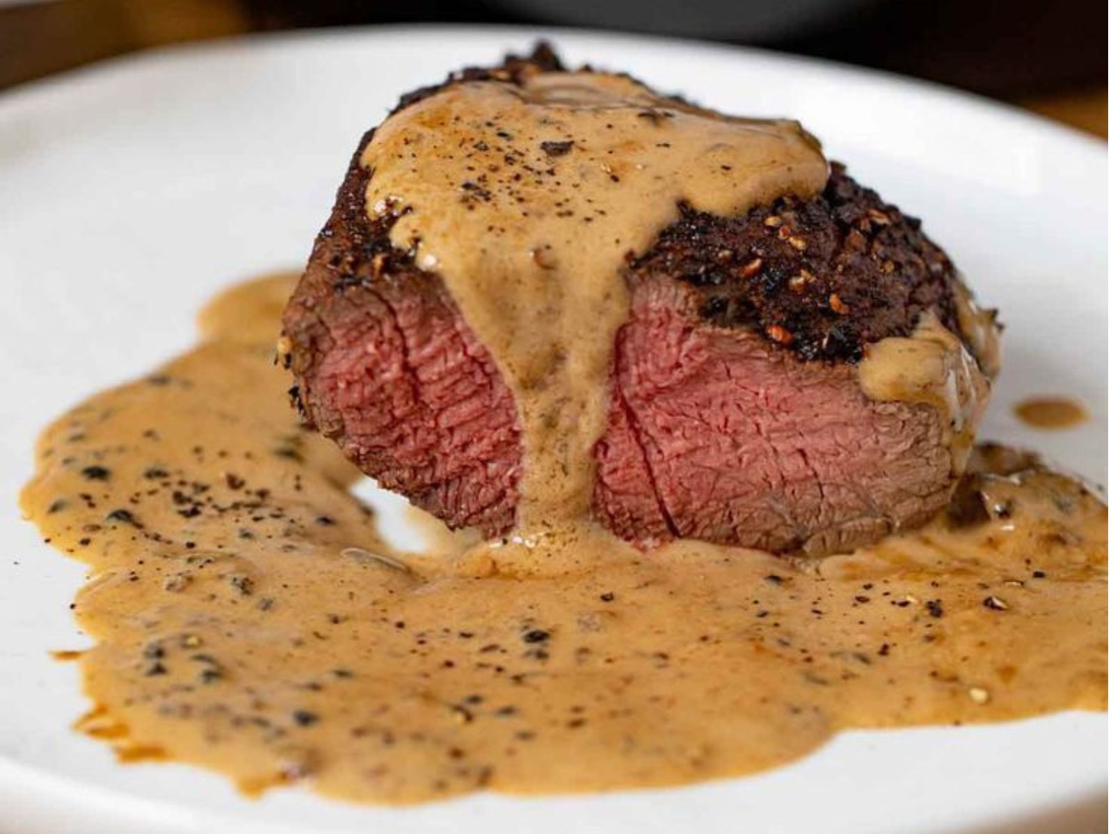Filé com fonduta de gorgonzola e farofinha de ervas